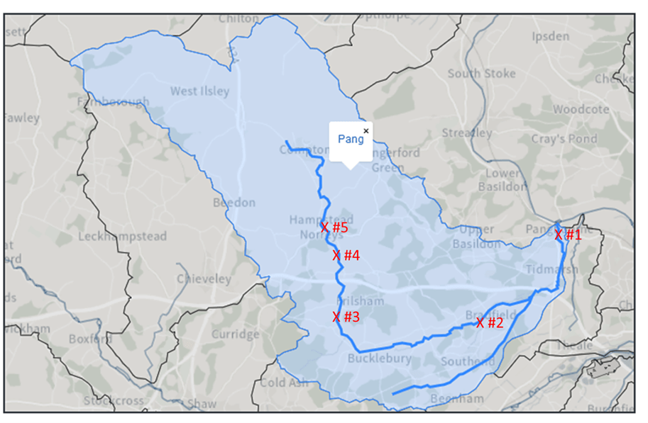 We are monitoring 5 sites along the length of the river as shown in the map below. The charity Action for the River Kennet ( https://riverkennet.org/ ) has kindly provided the funds needed to carry out this project.