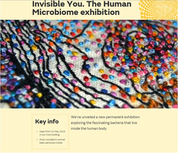 Since 2013, I have been the Senior Scientific Advisor to the Eden Project on their Human Microbiome exhibition which opened on 22nd May 2015