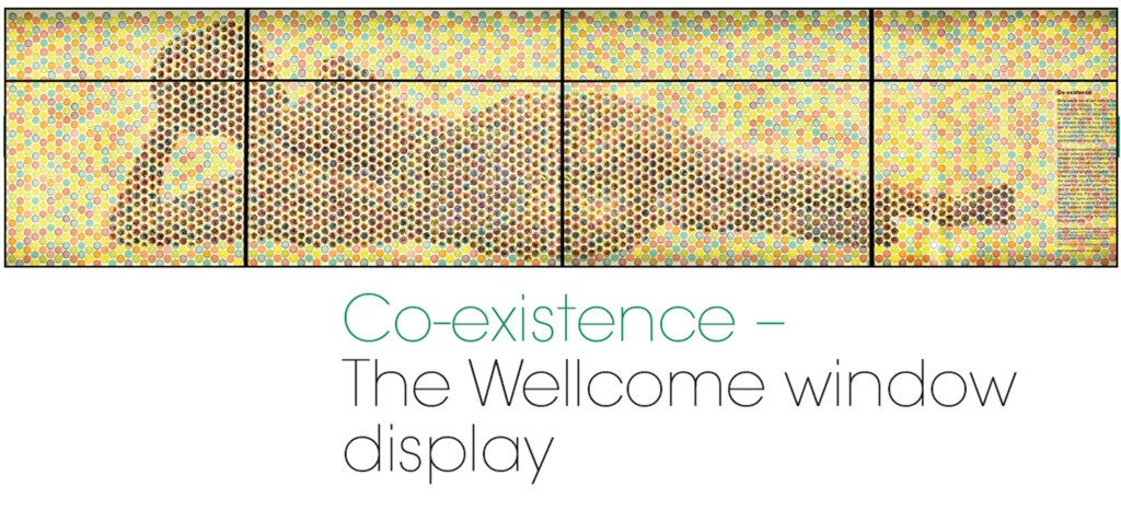 We finally collected in excess of 750 digital images from 32 different microbial genera. More than 4,500 glass petri dishes were used to construct the huge figure. This was mounted in the window of the Wellcome Trust headquarters in London and looked stunning, especially at night.